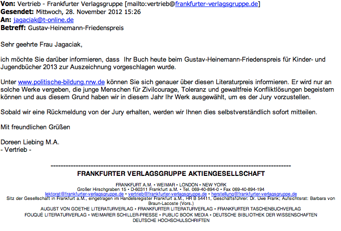 Nominierung zum Gustav-Heinemann-Friedenspreis
