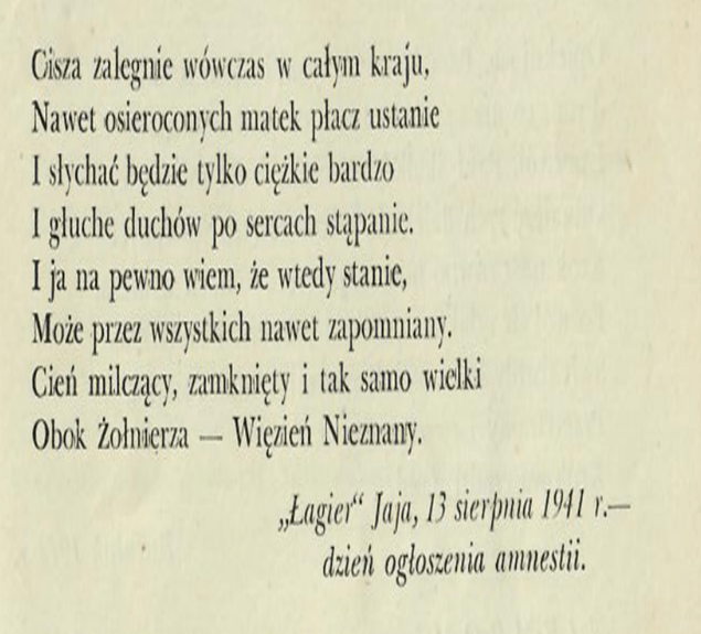 Każdy żołnierz nosił w plecaku buławę – ale niektórzy nieśli również laury poezji. Powstawała ona w niezwykłych i dramatycznych okolicznościach: podczas podróży z Wilna i Lwowa w okratowanych wagonach do łagrów w Liga, Baranowiczach, Olszy, a także w Jaji, Archangielsku, Kozielsku, Katyniu, Kołtasie, Poćmie, Saratowie czy Ałma-Acie. Wiersze powstawały w więzieniu na Łubiance w Moskwie, a także w Juchnowie i Urżumie. Twórczość nie umilkła nawet w Powstaniu Warszawskim, obozach w Zeithein i Buchenwaldzie, ani na polach bitew.