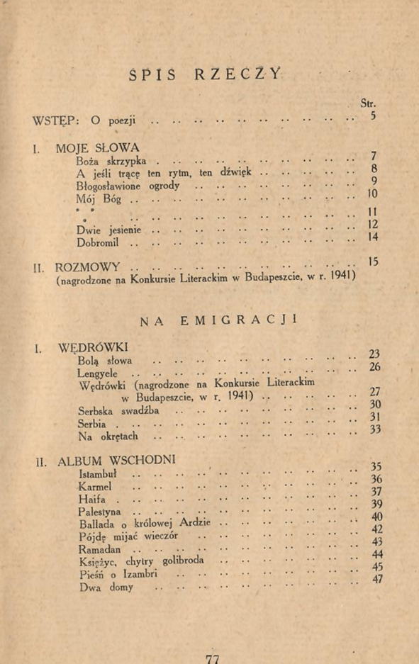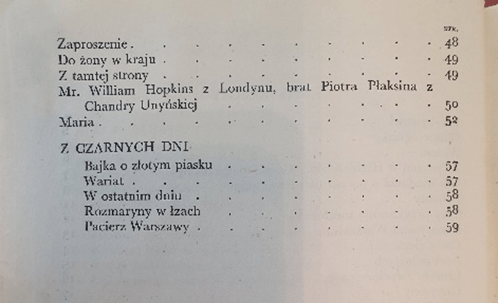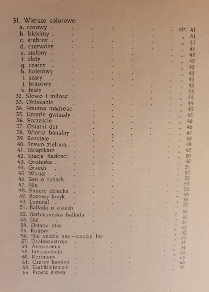 (Fot Nr 4, Spis utworów Ludwiki Biesiadowskiej w tomiku Pozji Po Drodze)