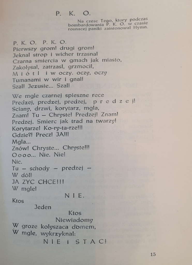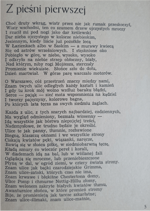 Więził muzę poezji w wersach na papierze, niczym tarczę, jako osłonę przed szaleństwem otaczającego go świata i wyzwoleniem z klaustrofobicznego ucisku obozu. Ta poezja ratowała też pamięć o krwawiącej Warszawie.