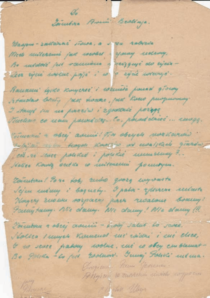 W późniejszych latach zaciągnęłam się z Lucjanem Szenwaldem do armii gen. Berlinga. Prosiliśmy o przyjęcie do „narodowego polskiego wojska” nad Oką. Razem z Adamem Ważykiem maszerowałam przez góry i rzeki, a z Leonem Pasternakiem powracałam z posiołków, z zesłania i z więzienia w Berezie. U boku Armii Berlinga ruszyłam prosto na Berlin.