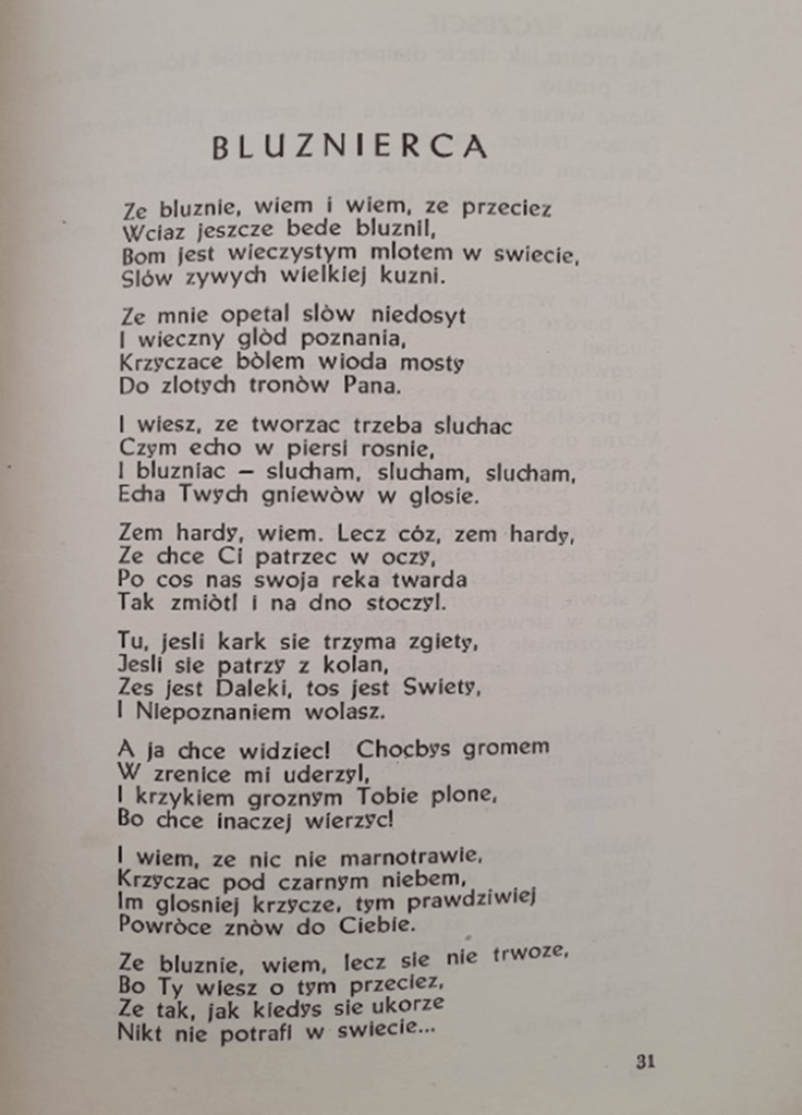 To poezja pełna bólu, rozterek i pamięci o Czasie Pogardy. Może i ty, Drogi Czytelniku, sięgniesz po te teksty. Może dostrzeżesz w nich odbicie tamtych dni, „przed oczyma duszy Twojej.”