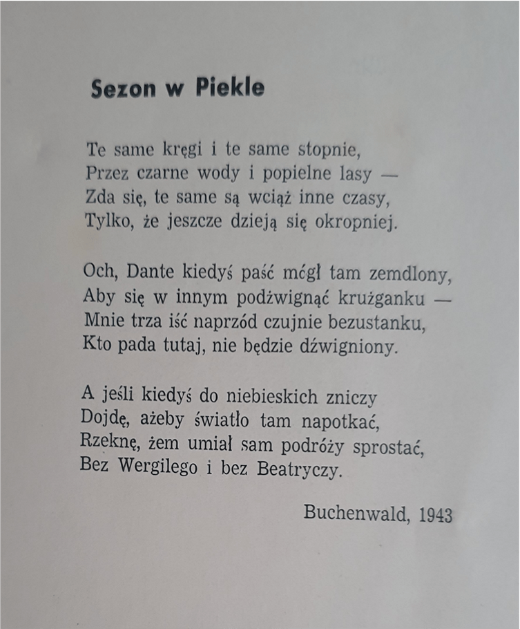 Fragmenty wiersza Sezon w Piekle napisanego w 1943 r w Buchenwald
