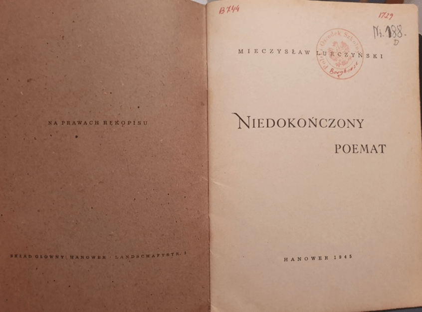 Fot 5 Strona tytułowa Poemat Niedokończony, Mieczysława Lurczyński