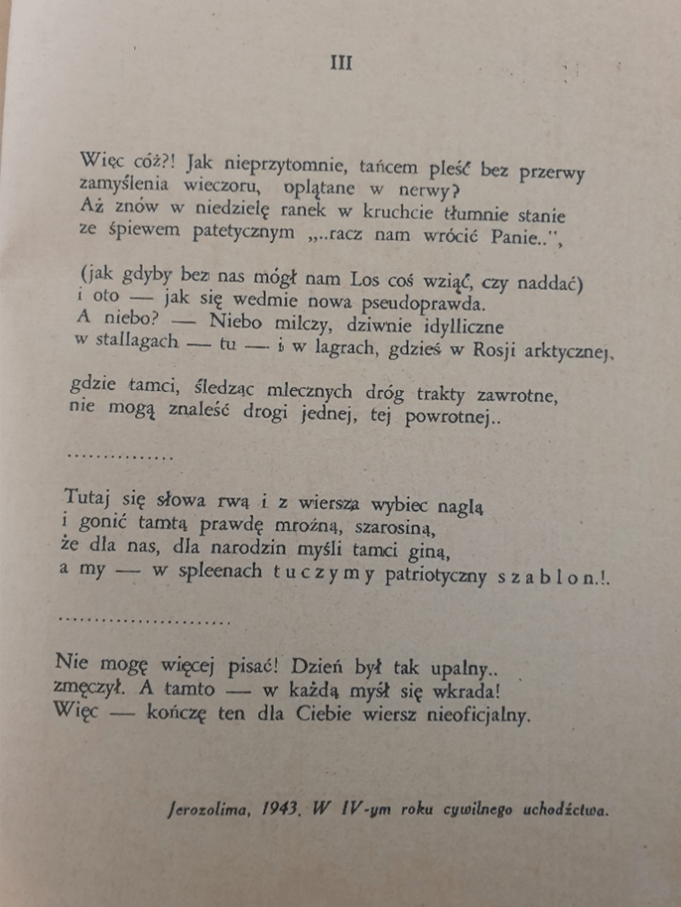 Szczególnie przejmujący jest List do domu, będący symbolicznym „listem do Polski” pisanego przez wygnańca przymusowego, który zmaga się z odcięciem od ojczyzny.