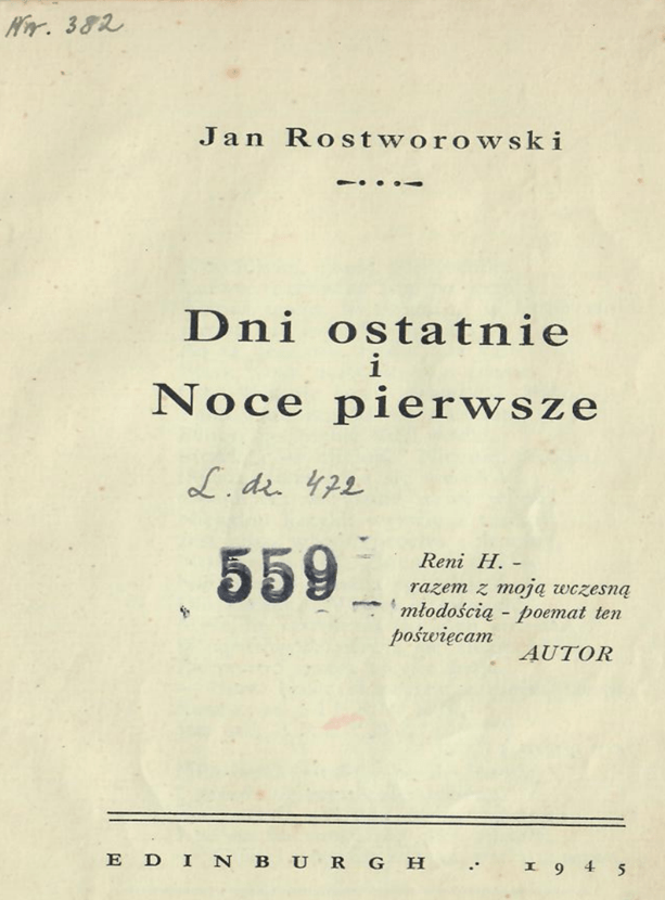Fot 4, poczatek Poematu Niedokończonego, Mieczysława Lurczyńskiego, wydanego w Hanowerze w 1945 r, na prawach rękopisu