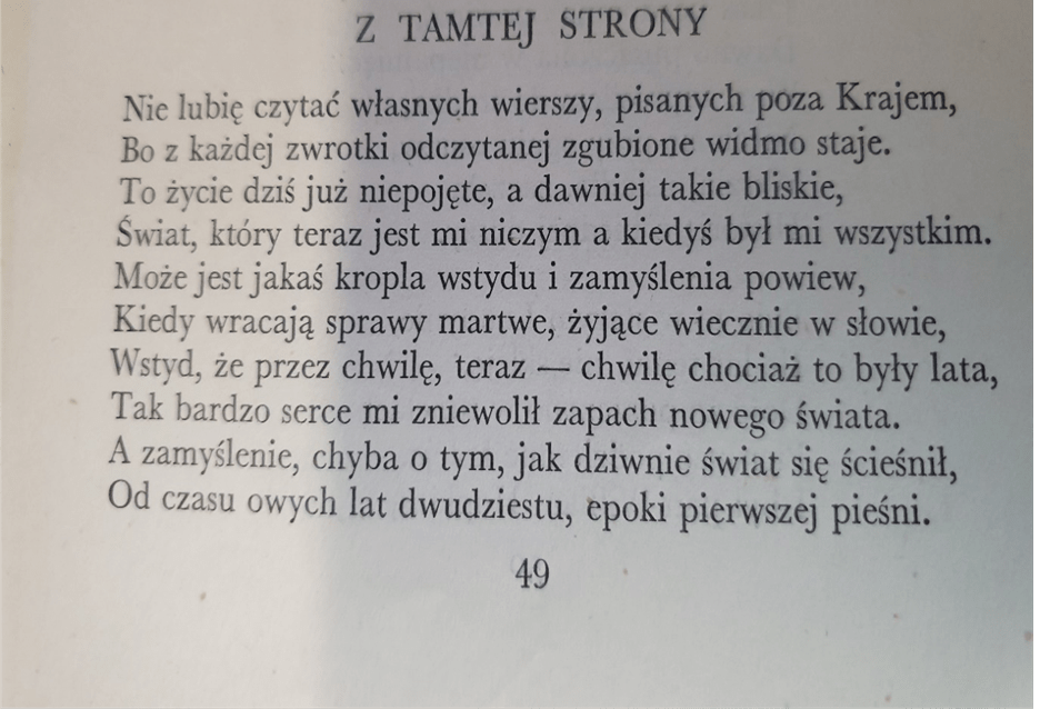 Moje zestawienie poezji nie jest wynikiem żmudnych poszukiwań w źródłach historycznych ani literackich archiwach. To subiektywny wybór, oparty na książkach odnalezionych w 2024 roku, stworzonych przez poetów emigracyjnych. Nie pokusiłam się o szczegółową analizę krytyczno-literacką — opisałam jedynie to, co odczuwałam, zanurzając się w tych wierszach.