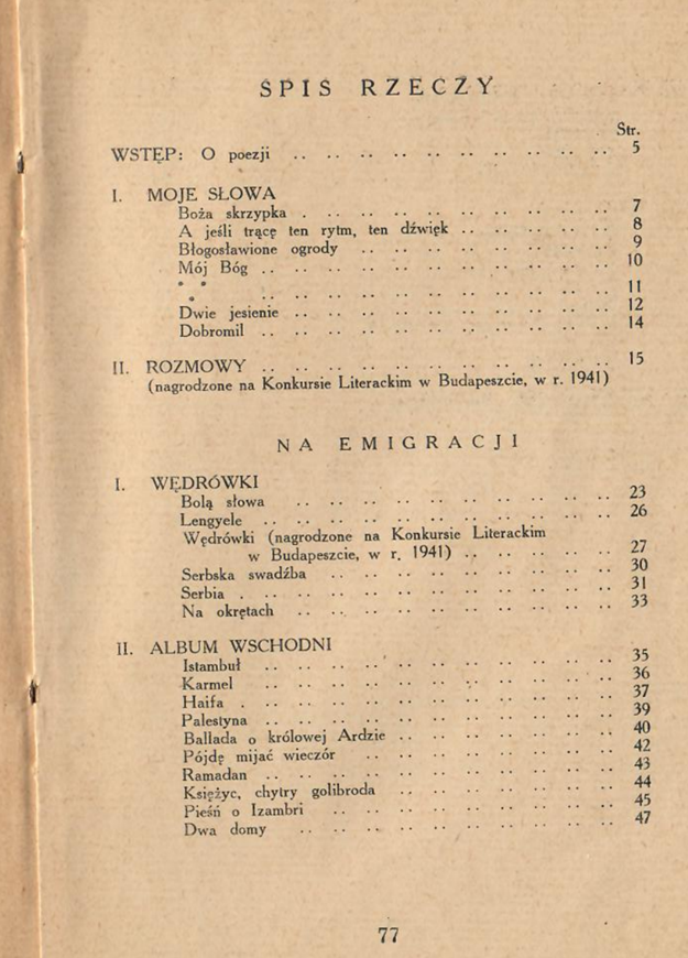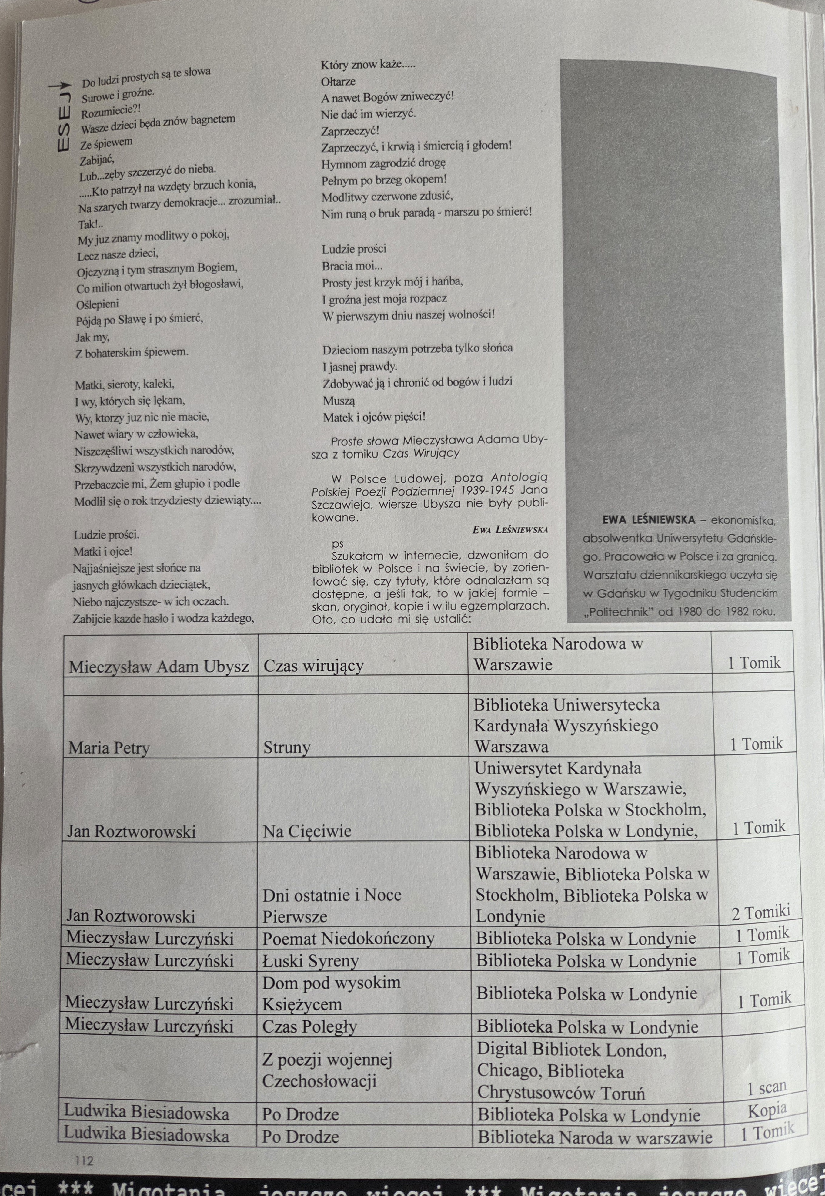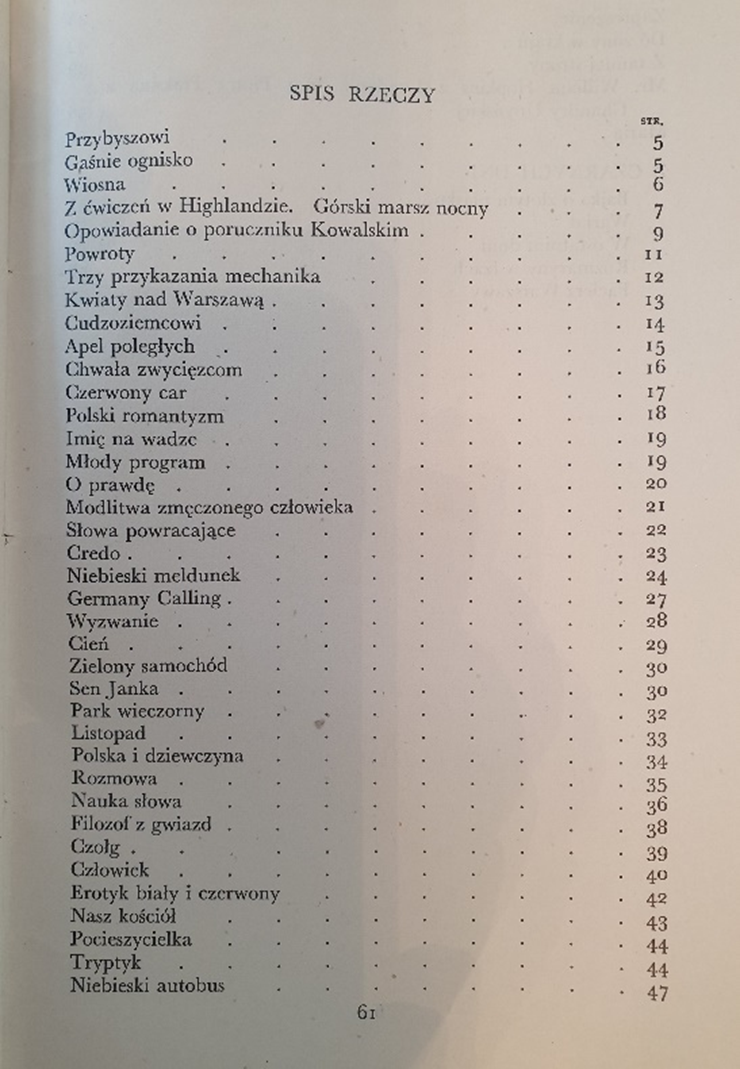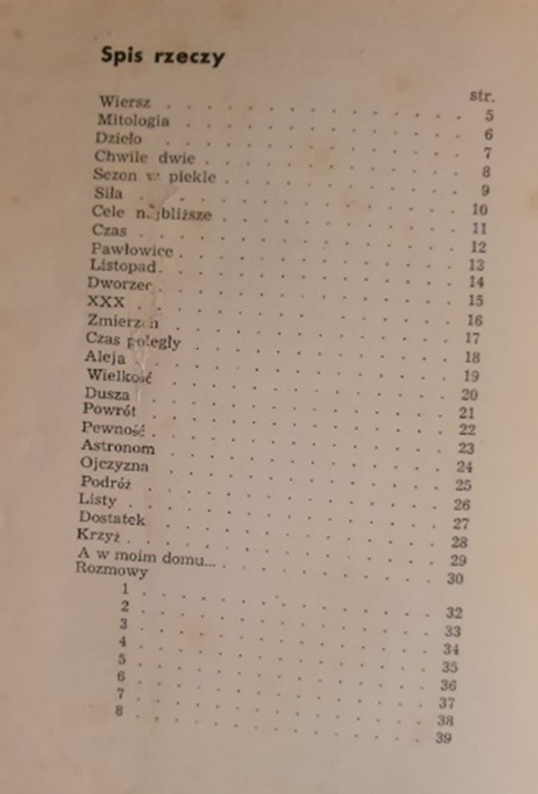 (Fot Nr 4, Spis utworów Ludwiki Biesiadowskiej w tomiku Pozji Po Drodze)