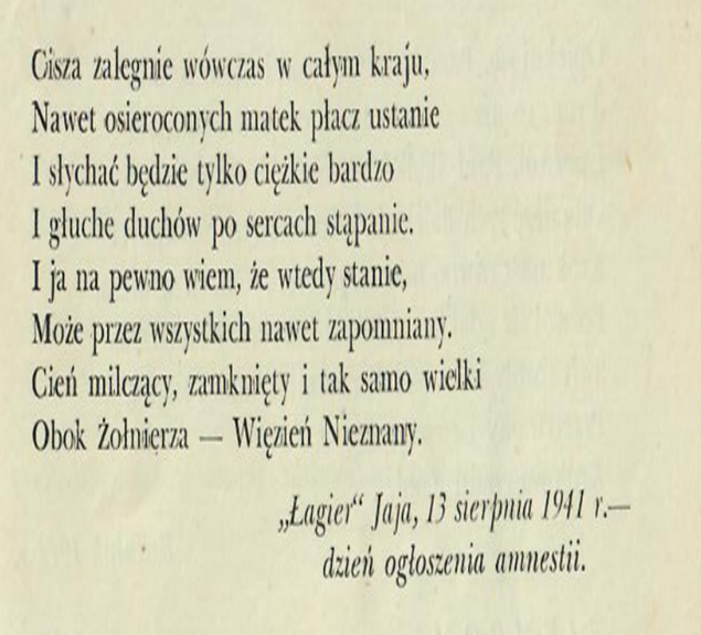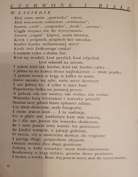 Pisała już w okratowanym wagonie w drodze na Sybir, pisała też nieugięcie, mimo panujących nieludzkich warunków „W Łagierze”, gdzie: