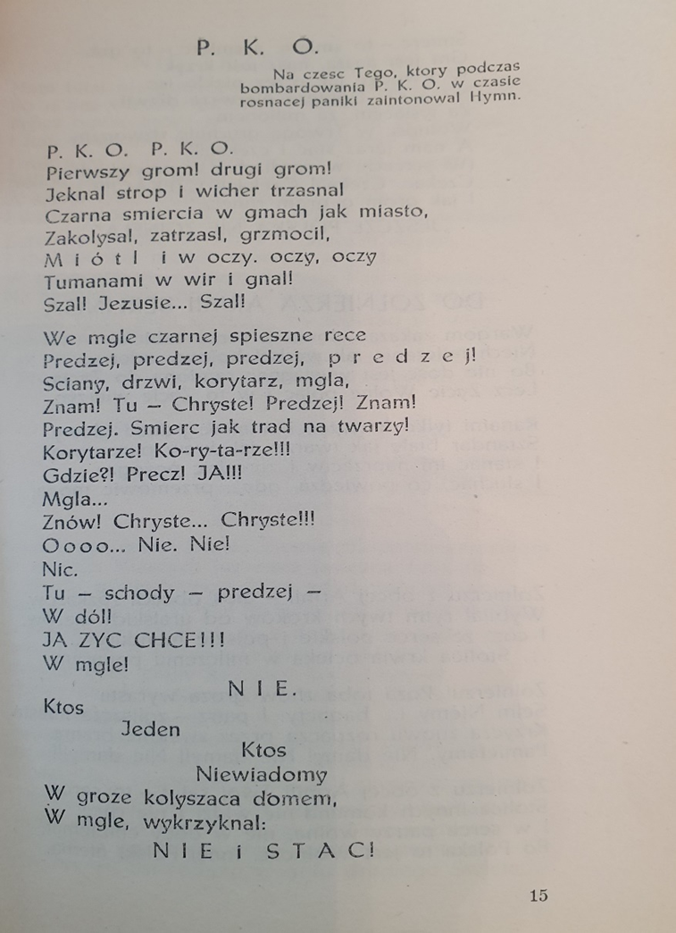 Więził muzę poezji w wersach na papierze, niczym tarczę, jako osłonę przed szaleństwem otaczającego go świata i wyzwoleniem z klaustrofobicznego ucisku obozu. Ta poezja ratowała też pamięć o krwawiącej Warszawie.