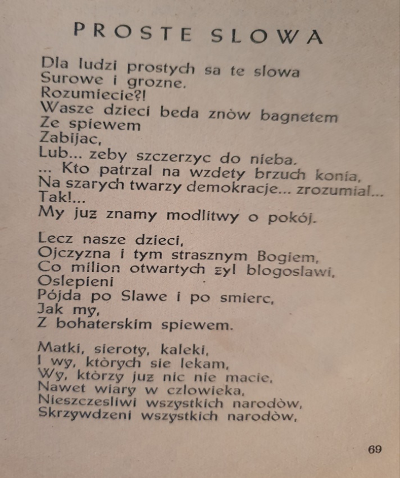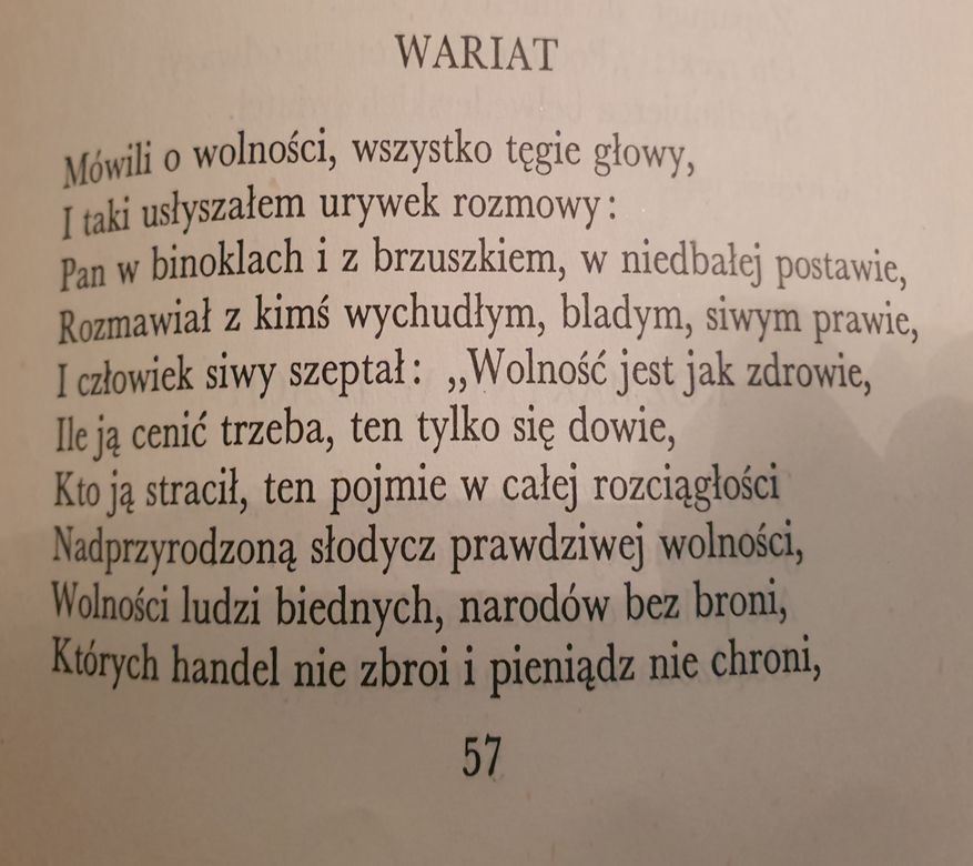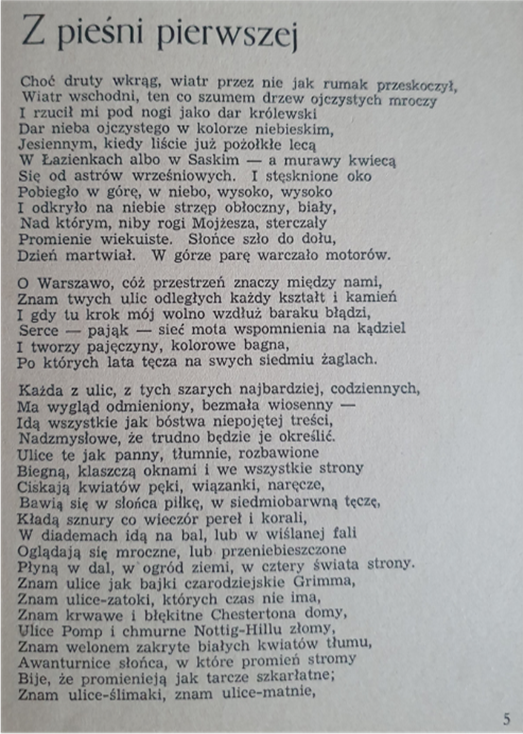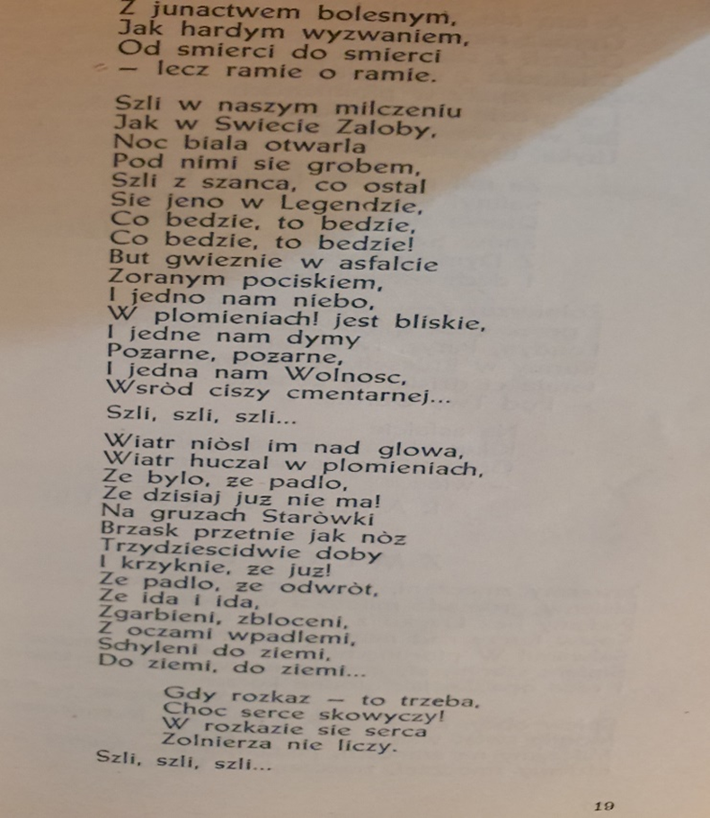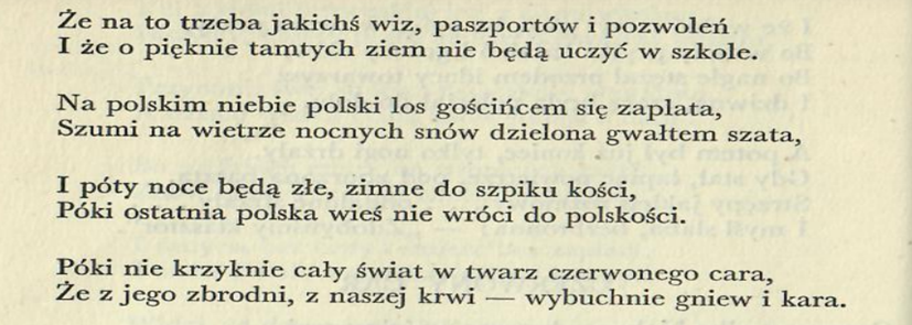 Nie sposób pominąć patriotycznego manifestu Władysława Broniewskiego – Bagnet na broń, który wpajano nam niemal jako obowiązkowy hymn pokolenia. A wiersza Żołnierz polski musieliśmy uczyć się na pamięć – „наизусть”, jak to mawiano wtedy.