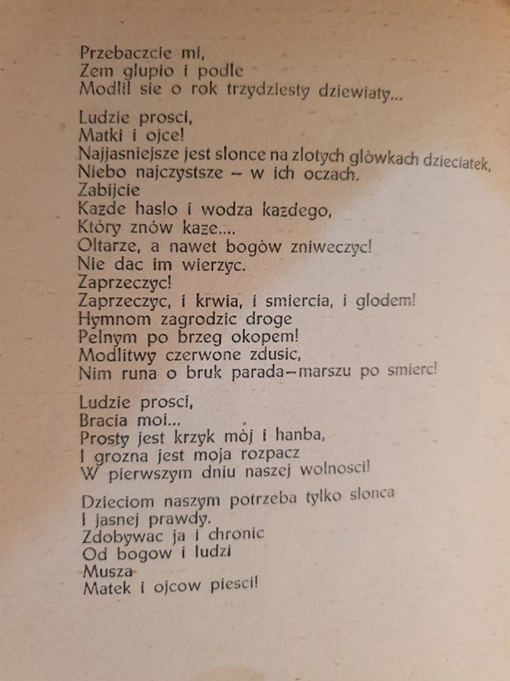 To poezja pełna bólu, rozterek i pamięci o Czasie Pogardy. Może i ty, Drogi Czytelniku, sięgniesz po te teksty. Może dostrzeżesz w nich odbicie tamtych dni, „przed oczyma duszy Twojej.”