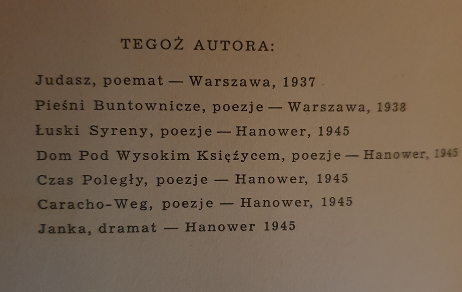 Fot 8, Zestawienie dzieł Mieczysława Lurczyńskiego i dat ich wydania w Poemacie Niedokończonym z 1945 roku.