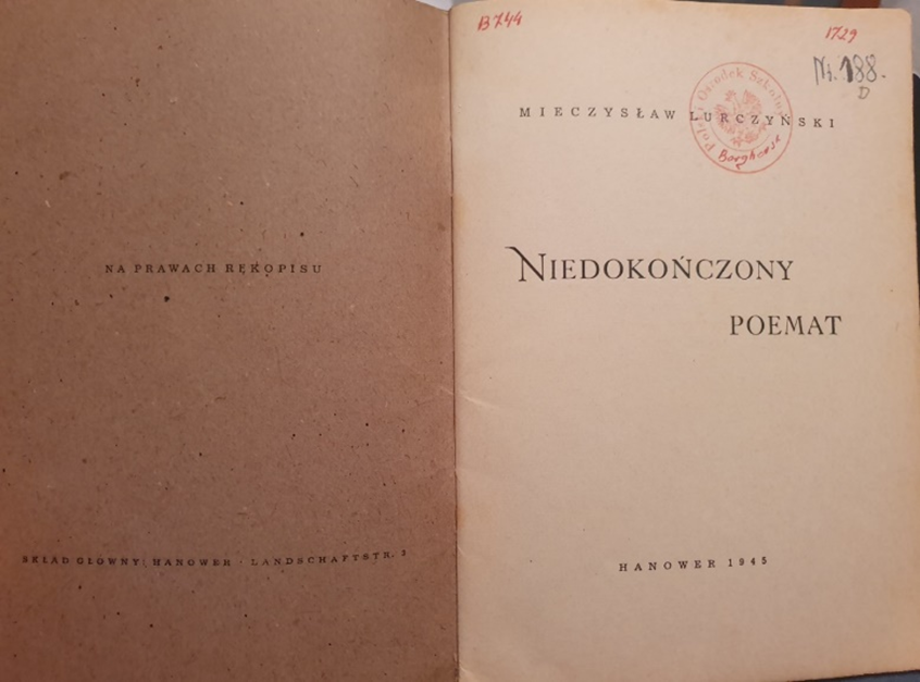 Fot 5 Strona tytułowa Poemat Niedokończony, Mieczysława Lurczyński
