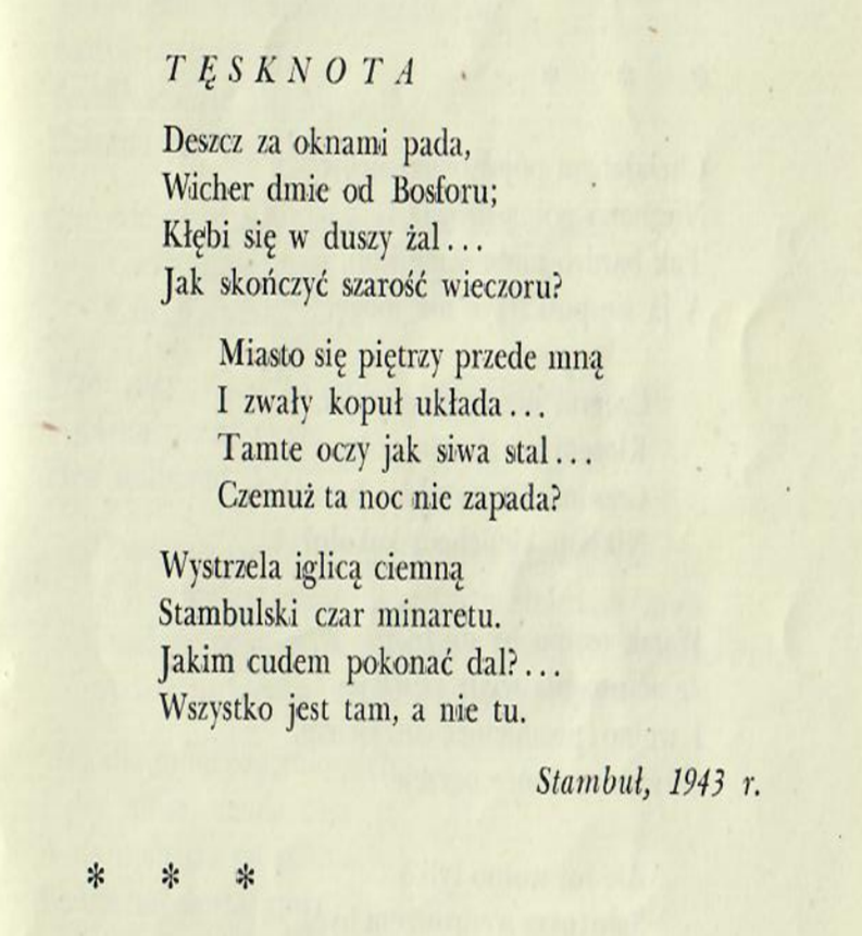 Szczególnie przejmujący jest List do domu, będący symbolicznym „listem do Polski” pisanego przez wygnańca przymusowego, który zmaga się z odcięciem od ojczyzny.