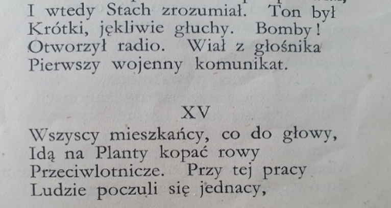 Z pewnością jakieś pokolenie pozbywało się tego zbioru przodka-bibliofila, ponieważ książki, które znalazłam, były wydane między 1939 a 1946 rokiem. Język polski, czcionka – tylko częściowo polska i nie do końca czytelna, teksty wierszem, a nazwiska autorów zupełnie mi obce.