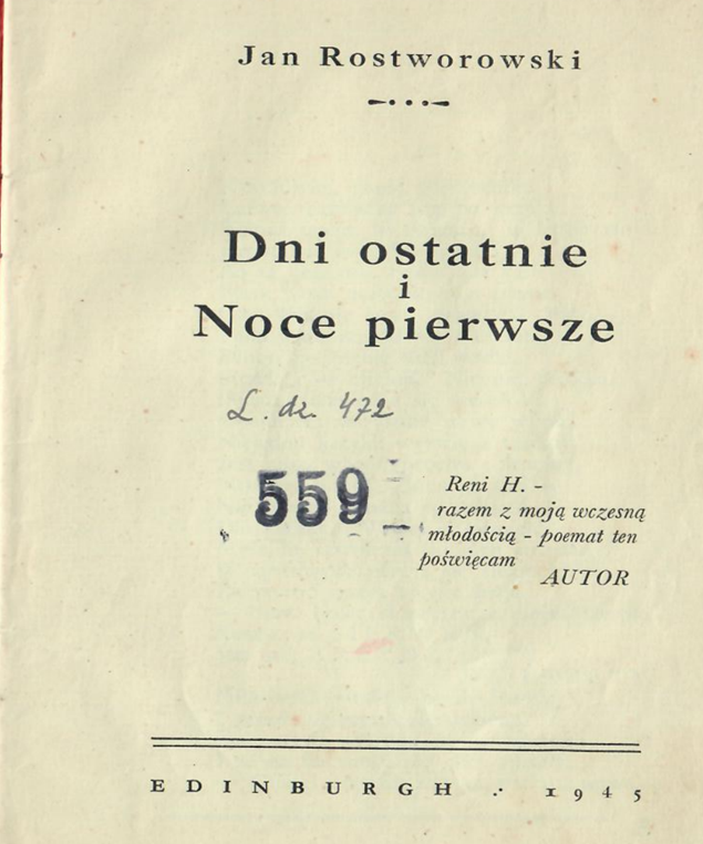 Fot 4, poczatek Poematu Niedokończonego, Mieczysława Lurczyńskiego, wydanego w Hanowerze w 1945 r, na prawach rękopisu